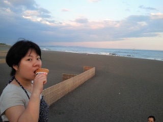 夕焼けを見に海に行きました!!